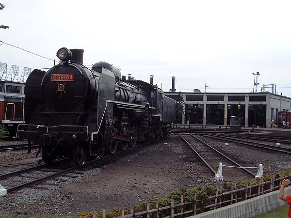 道中は「はるか」で京都まで。 当面の目的を済ませタクシーで梅小路蒸気機関車館まで向かいます。 入り口から入ると移築された旧二条駅舎がありそこで入場券を買います、旧二条駅舎は資料展示館にもなっているという事なのでもっと大きいのかな?と思っていたのですが結構小さい建物です。 旧二条駅舎を抜けると目の前に扇形車庫が有り、道なりに進んで行くとSLスチーム号の乗り場に向かいます、このスチーム号に載るのが今回の目的、順番で居並んでいると上手い具合に直前の家族で定員になり次の便になりました、これなら前の方で座れそうです。 目の前で出発する汽笛が鳴ります、結構凄い音です、その音で邦彦がSLを怖がってしまうというハプニングが発生!結局次の便に乗って一番前に座れたのですがずっとしがみついたままでした(^.^; SLスチーム号を降り次は扇形車庫の中の機関車を見に行きます、扇形車庫の中で機関車の運転体験と言う子供向けのイベントも有りました、電気仕掛けの小さい機関車?を1往復運転させてもらえるというものですがこれには二人とも喜びました。邦彦が機関車の汽笛を怖がるのでSLスチーム号運転終了後の転車台の回転風景を見たかったのですが取りやめ少し早めに蒸気機関車館を後にします。 外の車輪で記念撮影し蒸気機関車館の外周を回る市電に乗って梅小路蒸気機関車館を後にしました。 |