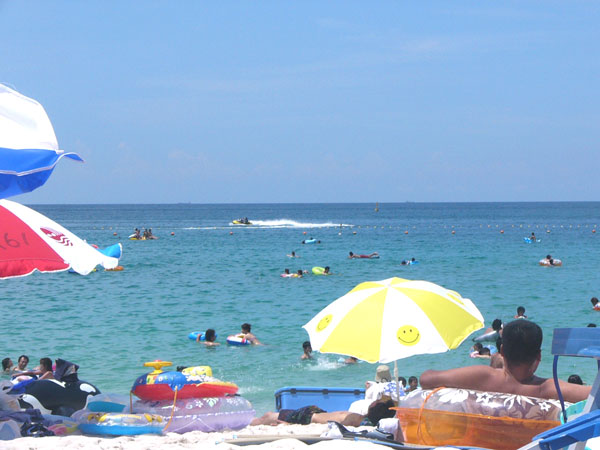 朝7時に起きて7時40分頃に布団を上げに来てくれる、予定通り8時食事、食事の時に仲居さんにカブトムシの番を貰う。食事が終わってコンビニにお茶を買いに行き水筒に詰めて準備をし海に向かう。11時頃コンビニの弁当を食べてさらに遊ぶ、昼も過ぎて2時頃になると人も少なくなってくる、スイカ割りをしてそのまま浜辺において行ったグループが居た模様、他はそれなりに奇麗にして行く人が殆どだったんですが・・・。結局4時頃まで海で遊び宿に帰る、そのまま入浴。夕食までの間に少し歩き土産物屋さんを覗く、花火と水着を買う、妻が実家に牛蒡巻きを送った。6時から夕食、メニューはすき焼、子供達は例によってあまり食べない・・・子供達の分もつまむと毎食腹がはち切れそうになる、5キロほど太ってそうな予感。夕食後一休みして白良浜に花火に行く。白良浜では今、メッセージ花火と言うイベントが行われているそうで昨日間隔が開いて打ち上げられていた花火がそうらしいです、1発五千円でメッセージが地元FM放送と白良浜で放送された後打ち上げられる。そのイベントは9時からなのでゆっくりと花火をする。花火が終わると9時10分前、下の子がぐずるがなだめて時を待つ、10発ほど花火を見て部屋に帰る。部屋に帰ると子供達はバタンキューと寝てしまった。日焼けで背中と太ももが痛い・・・翌日海に行けるかどうか不安。